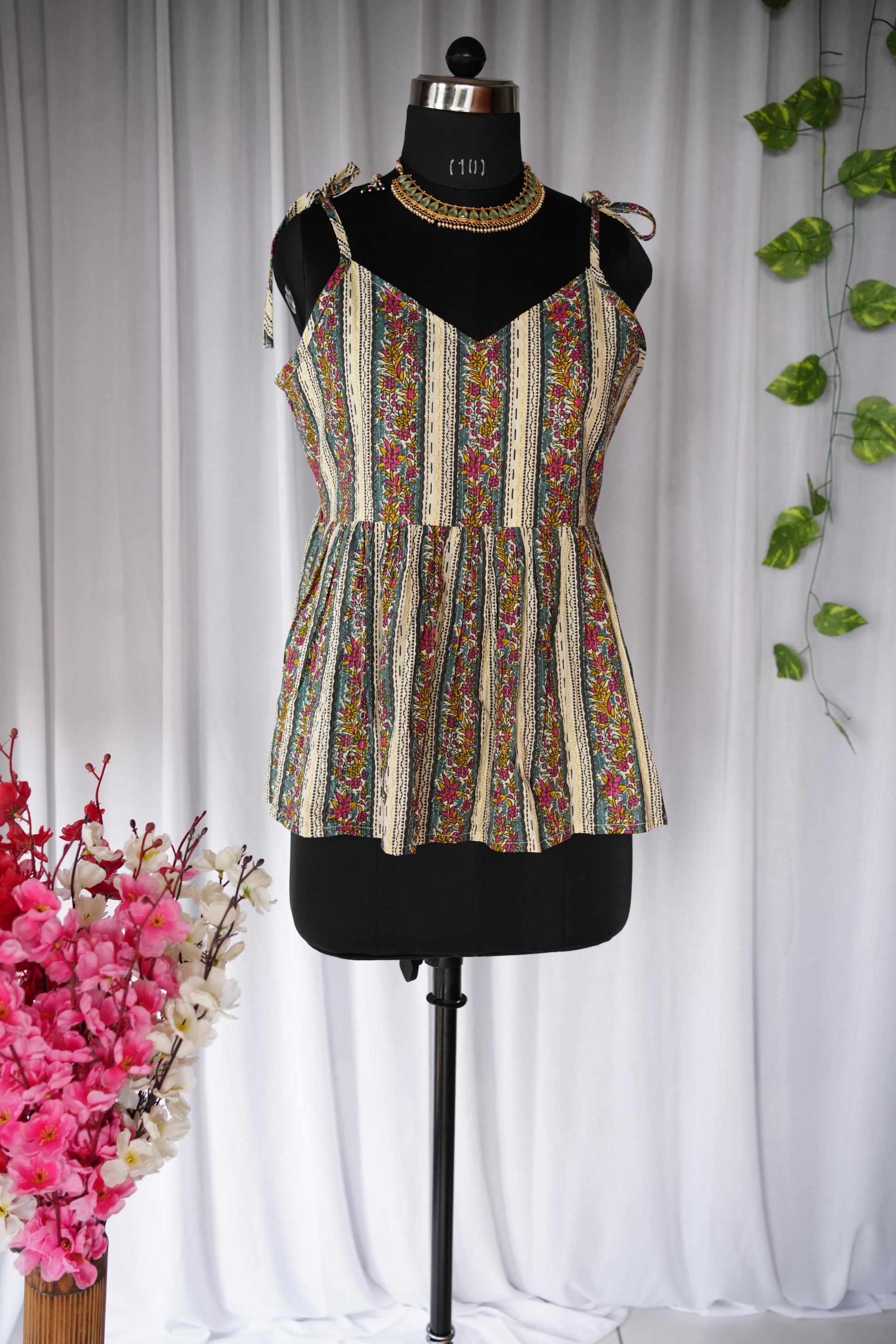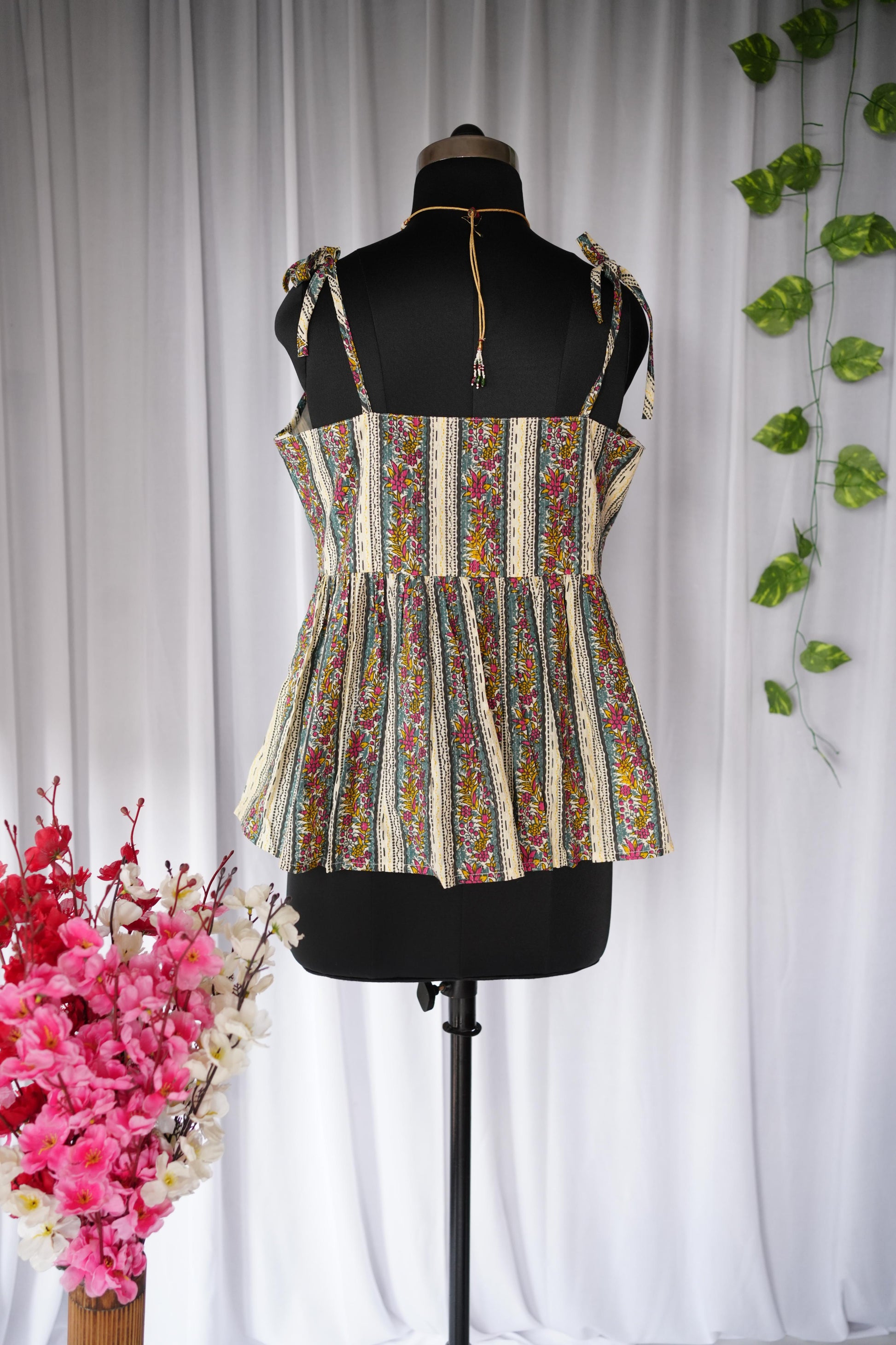 Neckline: Square Neck with Adjustable Tie-Up Straps